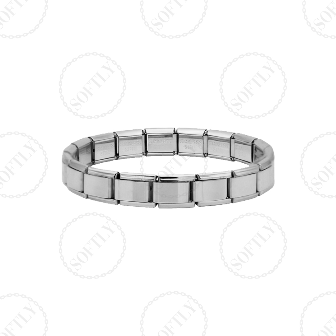 - Una (1) pulsera italiana plateada de acero inoxidable.
