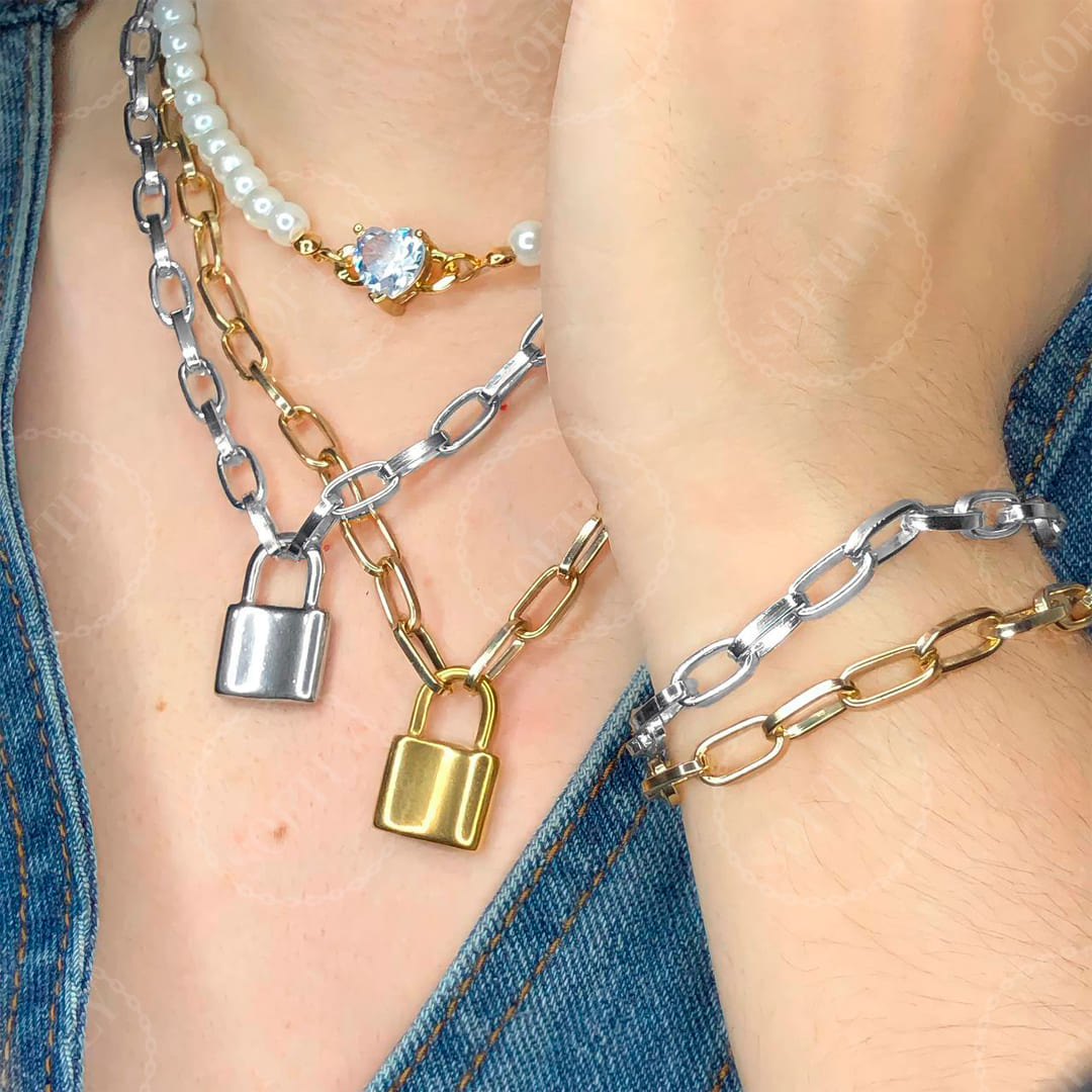 PADLOCK WITH RECTANGULAR CHAIN